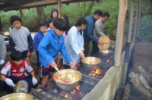 2日目にはあいにくの雨となってしまいましたが、すべての活動を経験することができました。夜には大部屋にふとんを敷き、眠りました。子どもたち自身のチームワーク、施設の方々や引率教員たちの助言により、皆良い時間を過ごすことができ、金曜日の午後には学校まで戻ってくることができました。