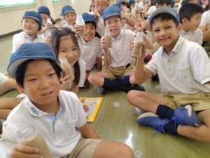 They took another field trip to learn more about the foods we eat and drink. They visited Torisen Supermarket. A store manager told the students how food is delivered to the supermarket, and then bought by the consumers. Also, students learned about the store’s recycling campaign to reduce waste in food packaging.