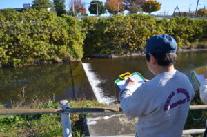 In science class, Grade 5 students are studying rivers, and the relationship between river speed and soil erosion. To help them understand, we walked to the nearby Snake River (Hebigawa) to observe the river conditions.