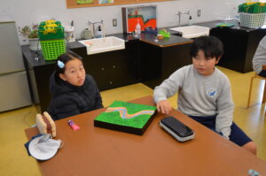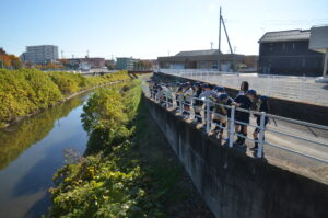 In science class, Grade 5 students are studying rivers, and the relationship between river speed and soil erosion. To help them understand, we walked to the nearby Snake River (Hebigawa) to observe the river conditions.